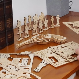 La pistola è realizzata in legno di alta qualità e i suoi pezzi sono tagliati con precisione, garantendo una perfetta unione durante l'assemblaggio.
