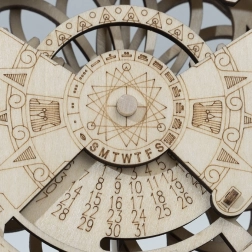 Questo unico modello meccanico 3D in legno a forma di calendario da tavolo offre non solo un'esperienza estetica, ma anche una funzione pratica per pianificare le date dal 2018 al 2040. Il kit include 26 pezzi facilmente assemblabili seguendo le istruzioni dettagliate allegate. Ideale per i principianti e per gli appassionati esperti di puzzle meccanici. Grazie ai dischi rotanti, è possibile selezionare un anno e un mese specifico e ottenere immediatamente il relativo calendario mensile.