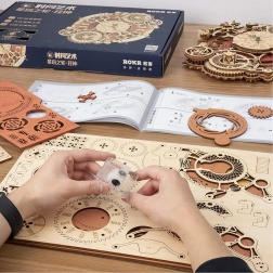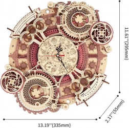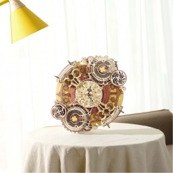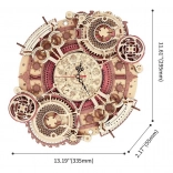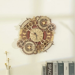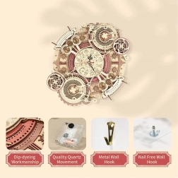 Scopri l'arte dell'orologeria con il nostro puzzle meccanico in legno 3D. Questo modello si distingue per la sua complessità e lavorazione precisa, che attira l'attenzione di tutti gli appassionati di fai-da-te e design steampunk. Ideale per essere appeso al muro, questo modello offre un utilizzo estetico e funzionale, grazie all'orologio alimentato a batteria e al calendario decorativo.