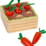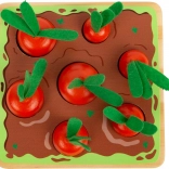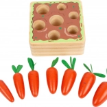 L'ispirazione dalla metodologia Montessori offre ai bambini l'opportunità di imparare in modo divertente. Il gioco di inserimento e smistamento si basa su sette carote di dimensioni diverse che i bambini inseriscono confrontando nei fori giusti della tavola. Questo set di gioco aiuta a sviluppare la motricità fine, la comprensione delle dimensioni e l'osservazione. Inoltre, grazie al design realistico delle parti in feltro verde, incoraggia anche il gioco di ruolo e lo sviluppo dell'immaginazione di giovani giardinieri.