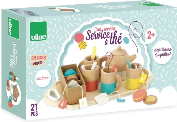 Il grande set da tè in legno VILAC offre ai bambini un’esperienza autentica di gioco del tè. Grazie ai 21 pezzi finemente realizzati in piacevoli tonalità pastello, i bambini possono servire il tè, offrire macaron e biscotti e imparare le buone maniere e le regole a tavola.