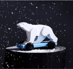 Un tenero orsetto polare in legno da trainare, ispirato all’opera dello scultore Françoise Pompon, che farà felici i piccoli esploratori dai 18 mesi. Il giocattolo con superficie liscia, struttura solida e ruote silenziose stimola la coordinazione dei movimenti, lo sviluppo della motricità grossa e la gioia dei primi passi.
