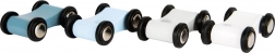 La struttura stabile e arrotondata combina legno naturale e bianco con delicate tonalità di blu e verde. Sono incluse 4 macchinine (1 naturale, 3 colorate) con ruote gommate per un movimento silenzioso e fluido. Il giocattolo è ideale per il gioco individuale o condiviso e si inserisce perfettamente nella cameretta.