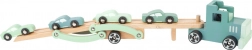 Il set comprende il camion con rimorchio e in totale quattro macchinine sportive. Il gioco sviluppa la coordinazione occhio-mano, la motricità fine e la narrazione creativa. Grazie ai materiali di qualità e ai bordi levigati, il giocattolo è adatto ai bambini dai 3 anni.