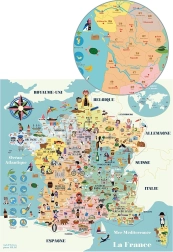 Questa elegante mappa magnetica della Francia è ideale per la cameretta o la sala giochi. Grazie ai solidi pezzi in legno e alla struttura chiara, i bambini acquisiranno conoscenze su regioni francesi, città, monumenti, montagne, fiumi e coste. Non mancano i riferimenti a gastronomia, aree vinicole e Champagne, che conferiscono autenticità alla mappa.