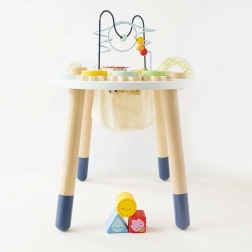 Il tavolino è realizzato in legno sostenibile certificato FSC® e rifinito a mano con vernici ecologiche e atossiche. La struttura in legno stabile e le forme arrotondate favoriscono un gioco sicuro, mentre il design vivace stimola immaginazione ed esplorazione sensoriale.