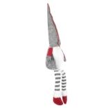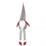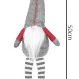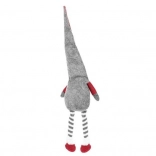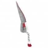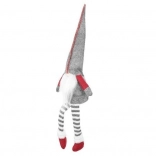 Decorazione tessile a forma di elfo in versione grigio‑rossa con tipico cappello alto a punta, lunghe gambe a righe e morbida barba bianca. Grazie allo speciale profilo sul retro siede stabilmente sul bordo di tavolini o mensole e dona all’ambiente un tocco caldo e accogliente.