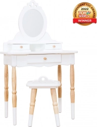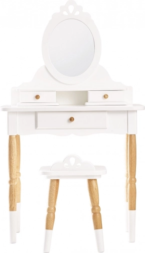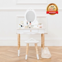 Bellissimo tavolino da toeletta in stile retrò, realizzerà certamente i sogni di molti bambini. Si distinguerà nella cameretta o nella sala giochi, è molto elegante e durante il gioco attira davvero l’attenzione dei più piccoli. Specchio ovale vittoriano in acrilico di prima qualità e infrangibile, tavolino a due livelli, 3 cassetti – perfetti per nascondere piccoli tesori e gingilli. Realizzato da un team di abili artigiani del giocattolo utilizzando legno di hevea sostenibile, questo splendido pezzo è curato nei minimi dettagli. Il tavolo e la sedia hanno gambe dalla forma interessante. Combinazione di bianco e legno naturale per un look senza tempo. Un arredo bellissimo da tramandare di generazione in generazione. Caratteristiche principali: tavolino da toeletta con sedia per bambini da 3 a 6 anni, capacità di carico massima 50 kg, prodotto eticamente in legno sostenibile, dipinto con vernici atossiche a base d’acqua. Riconoscimenti del giocattolo: Independent Toy Gold Award Winner 2022. Collezione Honeybake: I giocattoli di questa collezione sono ideali per l’esplorazione, aiutano i bambini a sviluppare immaginazione, competenze sociali e verbali e funzioni cognitive. Il design tradizionale con dettagli moderni divertirà sicuramente i bambini. Honeybake è la collezione di Le Toy Van che ha vinto il maggior numero di premi, per design, qualità, sicurezza e anche per valore educativo e ludico.