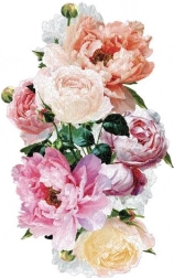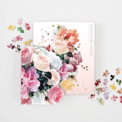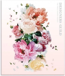 Un ricco insieme di fiori di peonia in toni pastello dona al puzzle completato un'eleganza delicata e un aspetto decorativo.