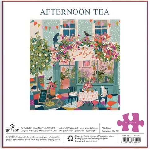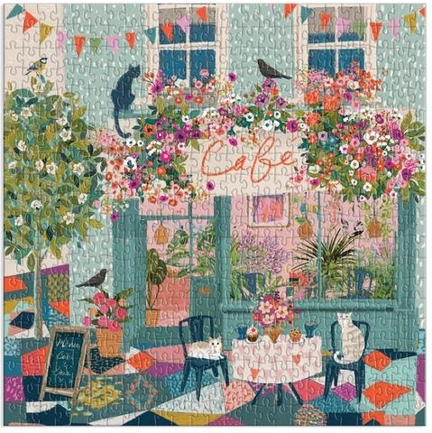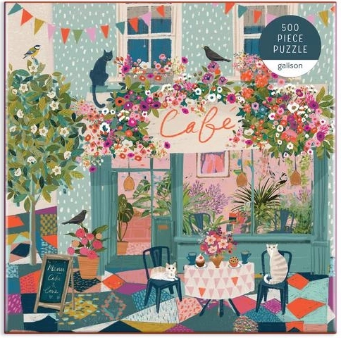 Scopri l’incantevole mondo di GALISON con il soggetto “Tè del pomeriggio al caffè”. L’illustrazione della best seller Victoria Ball cattura l’atmosfera accogliente di un caffè cittadino adornato da piante fiorite, dove giocano adorabili gatti e svolazzano gli uccelli. Il puzzle è custodito in una scatola rigida con finitura opaca, ideale anche come regalo.