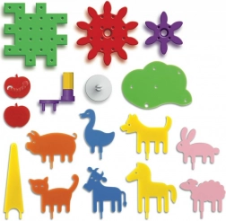 Quercetti Georello Farma è il giocattolo ideale per ogni bambino che ama creare e costruire. Questo set di costruzioni meccaniche include pannelli forati, assi, ruote dentate e figure di animali, che possono essere assemblati facilmente in uno straordinario scenario agricolo. Con l'aiuto di una manovella, puoi mettere in movimento il meccanismo e vedere tutto girare come in una giostra.