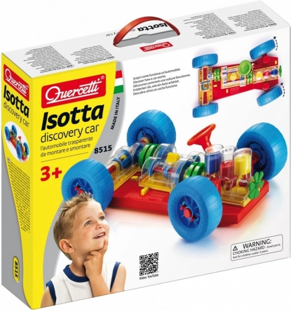 L'Auto Scoperta Quercetti Isotta è un giocattolo ingegnoso che invita bambini e genitori a scoprire il funzionamento di una vera automobile. Tutte le principali funzioni meccaniche sono riprodotte fedelmente. I bambini possono osservare il lavoro dei cilindri e dell'albero motore collegati a un cambio con 3 posizioni funzionanti (neutrale, 1° e 2° marcia). Il differenziale trasferisce il movimento alle ruote posteriori, consentendo loro di girare indipendentemente.