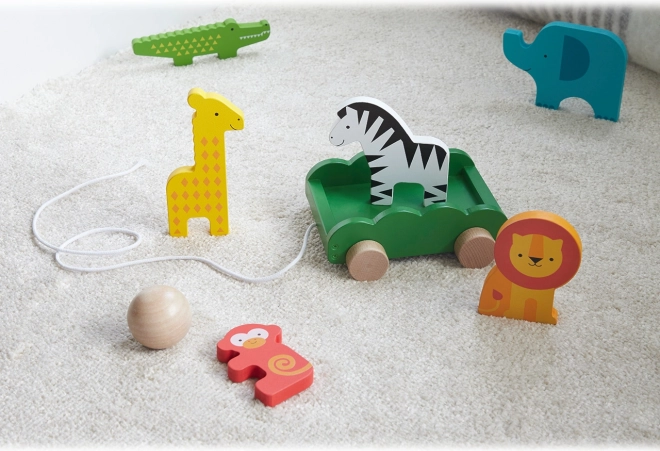 Allegro giocattolo in legno da traino ricco di animaletti colorati che permette ai bambini di sviluppare le capacità motorie e la fantasia.