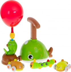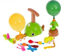 Scoprite come funziona la propulsione ad aria! Con la pompa manuale i bambini gonfiano il palloncino, lo collegano alla macchinina o agli accessori e, premendo il grilletto, il gioco entra in azione. Il set favorisce sperimentazione, pensiero logico e coordinazione occhio–mano, senza necessità di batterie.