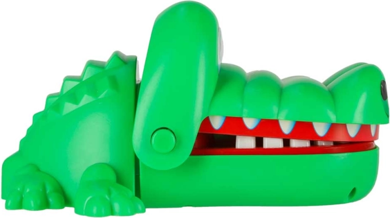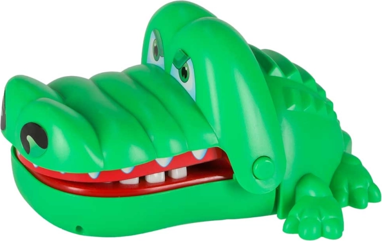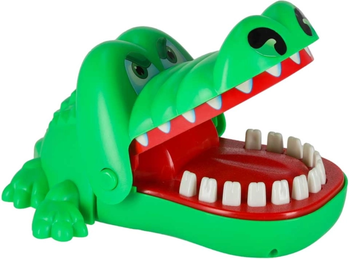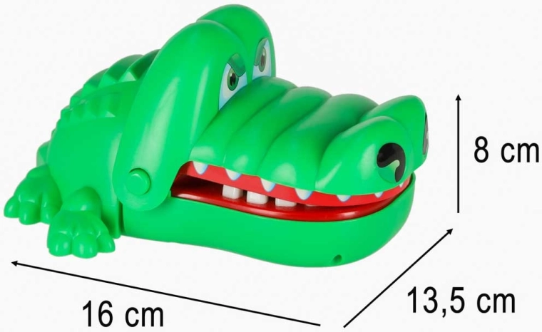 Ogni apertura della bocca sceglie casualmente il “dente dolorante”. Non sai mai quando il coccodrillo scatta: divertimento e sorpresa garantiti.