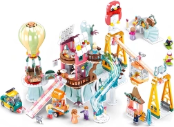 Costruisci la pista da sci, le casette e la mongolfiera e crea una vivace destinazione invernale con tanti scenari di gioco.