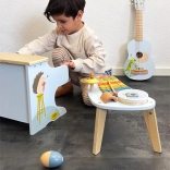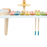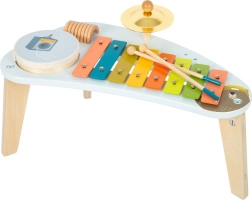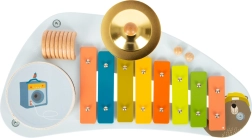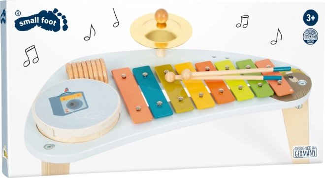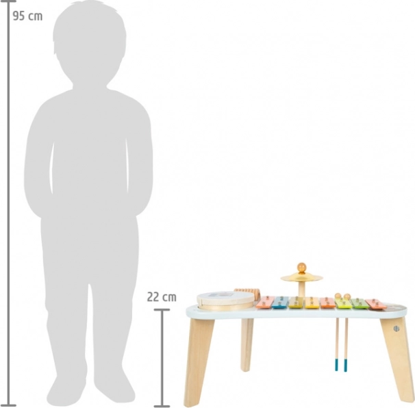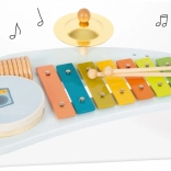 Il tavolino musicale Groovy Beats small foot è un set studiato per i primi passi da musicista. Grazie alla solida struttura in legno e alle tre gambe stabili, i bambini possono esplorare in sicurezza diversi suoni – dai toni melodici dello xilofono al chiaro tintinnio dei piattini fino ai beat del tamburo rimovibile. Le lamelle codificate a colori semplificano l’apprendimento e favoriscono rapidi progressi.