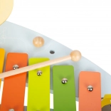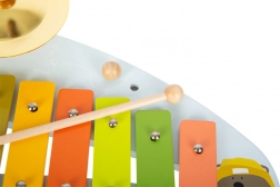 La confezione include due robusti battenti in legno massello e pratici spartiti (ad es. semplici canzoncine per bambini), per un’esperienza di gioco intuitiva e divertente fin dal primo giorno. Il design allegro combina legno naturale con moderne tonalità di blu, adattandosi a qualsiasi cameretta.
