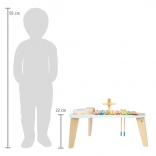 La base in legno a tre gambe e i materiali di qualità garantiscono un gioco sicuro e una lunga durata del giocattolo.