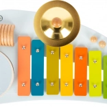 Xilofono, piattino, sonaglio e tamburo rimovibile formano un set compatto che motiva i bambini a scoprire suoni e ritmi diversi.