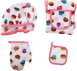 Con questo adorabile set da cucina, i bambini possono scoprire la magia del cucinare direttamente nella tua cucina. Ideale per sviluppare capacità manuali e la collaborazione tra genitori e bambini, questo set non deluderà. Include grembiule, guanto, cappello da chef e presina, tutti decorati con coloratissimi cupcake, rendono ogni attività in cucina più luminosa.