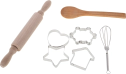 Include mattarello, cucchiaio, formine e frusta. Realizzati in materiali di qualità, durevoli e sicuri per i bambini.