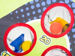 Il gioco con bersaglio è ideale sia per il divertimento all'aperto nel parco o in giardino, sia per i giochi interni a casa. I bambini possono stare dietro una linea contrassegnata e lanciare palline colorate o sacchetti verso il bersaglio con diversi valori di punti, che non solo li intrattiene ma allena anche precisione e concentrazione.