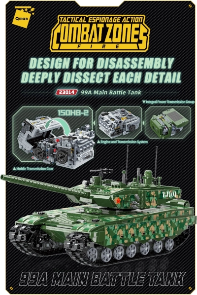 Costruisci l’iconico carro armato cinese 99A con 2.743 pezzi e scopri i suoi segreti grazie all’interno facilmente accessibile, alla torretta completamente girevole e al carrello con sospensioni indipendenti. Un unicum è il grande modello dell’unità di potenza 150HB-2, che consente di esplorare i dettagli costruttivi. Il set Qman è compatibile con altri marchi ed è realizzato in resistente plastica ABS.
