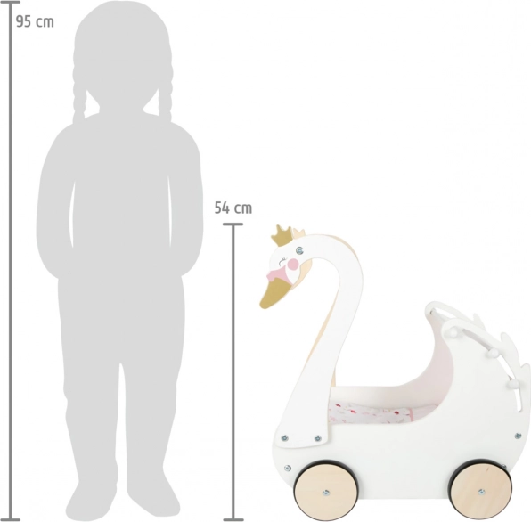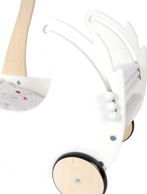 Questo passeggino con la sua forma di cigno e i motivi floreali completa l'estetica di ogni stanza dei bambini.