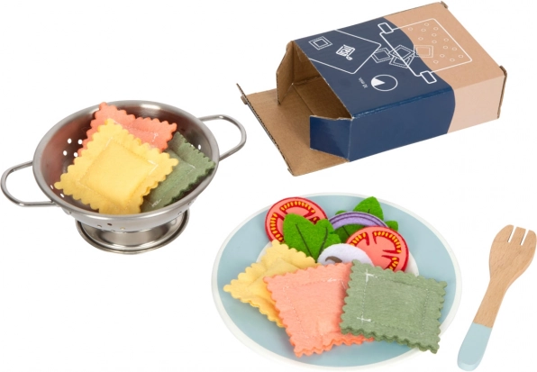 - modelli in feltro di tre tipi di pasta e dodici altri colorati ingredienti,