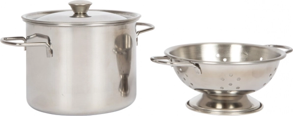 La pentola con coperchio e il colino sono realizzati in metallo di alta qualità, resistente e adatto al gioco quotidiano.