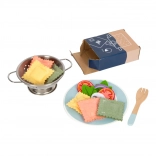 Questo set pratico è ideale per tutti i piccoli cuochi che vogliono preparare pasta come veri professionisti. Offre immense possibilità di gioco, dalla cottura al servizio. Include: