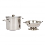 - Pentola con coperchio e colino, tutto lavorato realisticamente in metallo resistente,