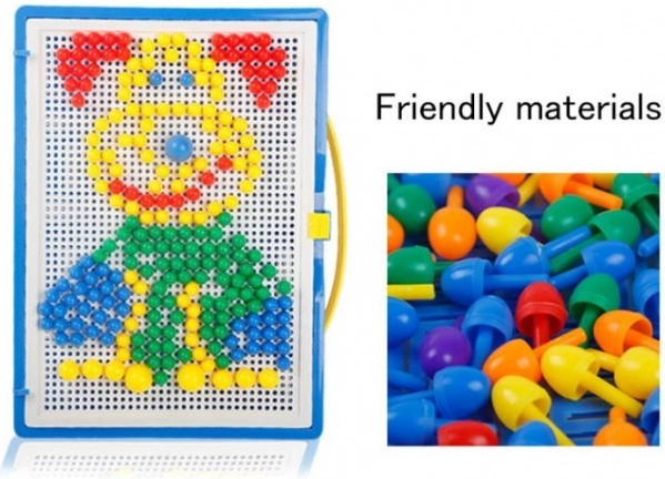 Creare disegni e modelli con pioli colorati stimola la creativit00a e migliora la motricit00a fine dei bambini.