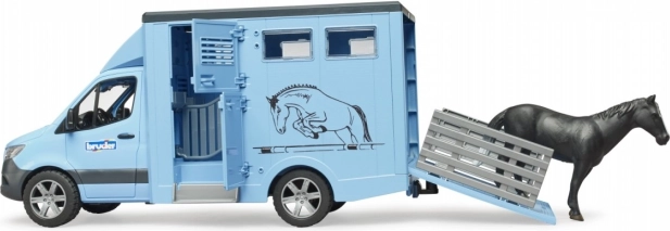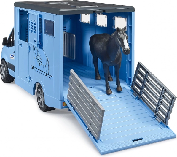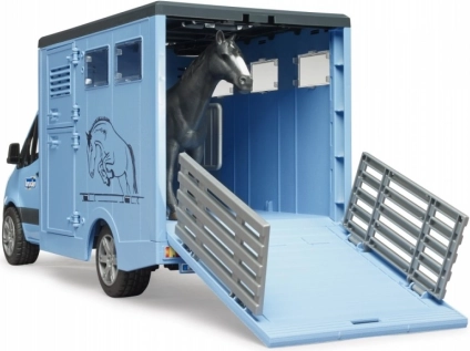 Questo trasporto cavalli dettagliato si basa sul popolare veicolo commerciale MERCEDES‑BENZ Sprinter. I bambini apprezzeranno la cabina funzionale con porte apribili, la sovrastruttura realistica per un trasporto sicuro e le tante possibilità di gioco: dalla rampa alla paratia adattata per due cavalli.