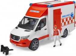 Ambulanza MB Sprinter è un modello dettagliato e interattivo che trasporta i bambini nel mondo delle operazioni di soccorso grazie agli effetti luminosi e sonori.