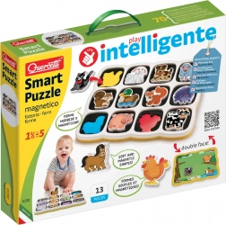 Quercetti Inseritore Magnetico Fattoria è un giocattolo fantastico per i bambini piccoli. Su un lato della tavola, i bambini possono inserire magneti nei fori predisposti, il che li aiuta a sviluppare il riconoscimento delle forme e dei colori. I pezzi illustrati si attaccano facilmente grazie ai magneti e possono essere riposti comodamente per ulteriori giochi.