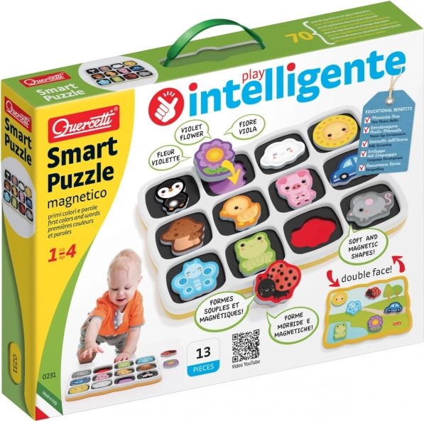 Il Quercetti Smart Puzzle Magnetico è un giocattolo ideale per i bambini più piccoli, non solo divertente ma anche educativo. Questo set giocoso, progettato per bambini da 12 mesi in su, include una lavagna con 12 pezzetti magnetici che possono essere facilmente inseriti negli spazi appositi, supportando il riconoscimento delle forme e dei colori.