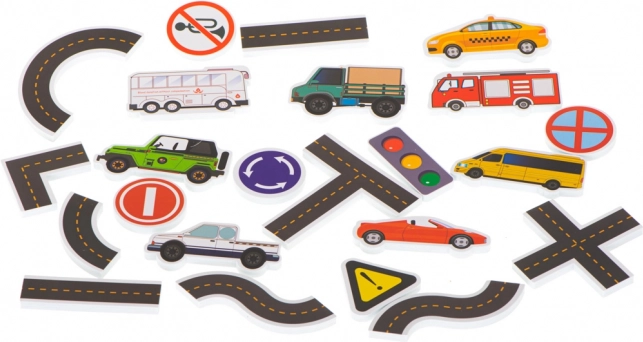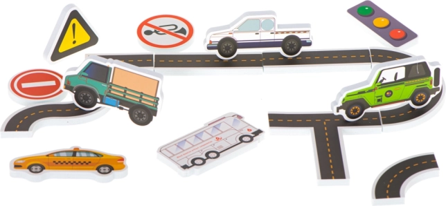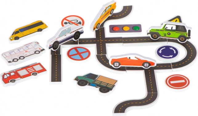 Scopri il magico mondo dei puzzle in schiuma con tema stradale! Questo innovativo giocattolo da bagno offrirà ai bambini molte esperienze durante il bagno. Facilmente aderente e ad asciugatura rapida – i bambini possono divertirsi a creare la propria citte0 marina con stradine e vari veicoli.