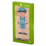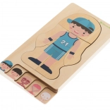 Il set include una base in legno e 28 pezzi singoli che vanno dallo scheletro fino all’abbigliamento della figura. Grazie al design semplice e ai materiali naturali, il puzzle sostiene i principi del metodo Montessori, che si concentra sull’educazione completa del bambino.