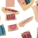 Ogni strato del puzzle rappresenta un diverso sistema anatomico, consentendo un apprendimento interattivo e divertente sul corpo umano.