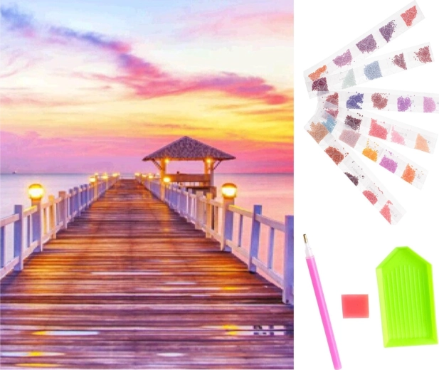 Scopri l'artista che c'e8 in te con questo set da pittura diamante e crea un'opera d'arte meravigliosa. Il set contiene tutti gli strumenti necessari per creare facilmente un affascinante mosaico con il motivo del molo al tramonto.