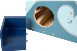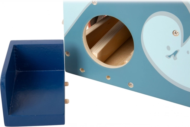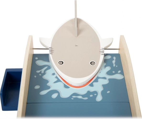 Trasforma ogni stanza o giardino in un mini campo da gioco! Il minigolf in legno con bocca di squalo offre ai bambini divertimento dinamico e allenamento di motricità grossa, coordinazione occhio–mano e pazienza. Basta lanciare la pallina sulla rampa blu come su un’onda e centrare la bocca aperta – lo squalo la chiude all’impatto e tu festeggi il punteggio.