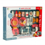 Esplora la magia della cucina con questo fantastico set da cucina che offre al tuo piccolo chef ore di divertimento. Il set include elettrodomestici simili alla realtà, come un forno a microonde, un tostapane e un frullatore, che permettono ai bambini di familiarizzare in sicurezza con l'uso degli attrezzi da cucina.