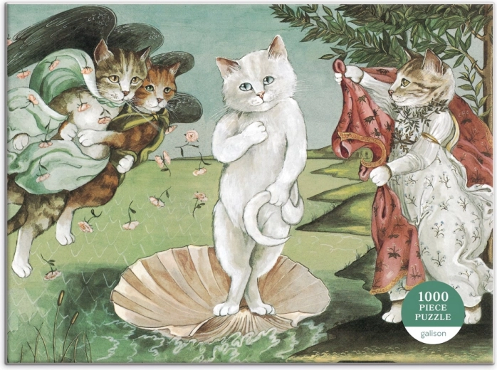 Arte classica con un tocco felino: questo puzzle trasforma la Nascita di Venere di Botticelli in una divertente scena felina dell'illustratrice Susan Herbert. Include 1000 pezzi con taglio preciso per un assemblaggio fluido, è confezionato in una scatola rigida con finitura opaca e comprende anche un'immagine di riferimento. Ottima scelta per gli amanti dei gatti e dell'arte dai 8 anni.