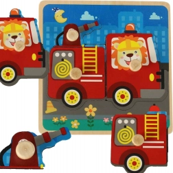 Puzzle in legno con motivo di camion dei pompieri è ideale per i bambini piccoli che vogliono imparare la coordinazione e il pensiero logico. Questo prodotto colorato e divertente supporta lo sviluppo delle abilità motorie fini.