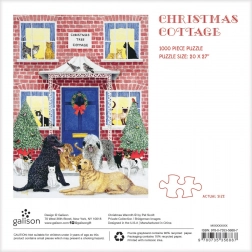 Scopri la magia del Natale con una scena ricca di cani, gatti e decorazioni festive davanti a un’accogliente casetta. Il puzzle da 1000 pezzi offre il piacere di un assemblaggio accurato e, una volta completato, crea una splendida immagine che delizia occhi e cuore.