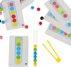 Include 24 carte fronte-retro che mostrano diversi schemi da replicare nel cilindro. Questi esercizi aiutano a sviluppare il pensiero e le capacità di concentrazione dei bambini.