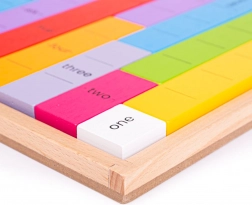 Questo strumento didattico in legno unisce gioco e apprendimento: i bambini possono letteralmente “toccare” i numeri, favorendo una comprensione più profonda del loro significato. Il tabellone stimola il pensiero logico, la percezione visiva e la motricità fine, incoraggiando al contempo l’esplorazione autonoma delle relazioni tra numeri e proporzioni.