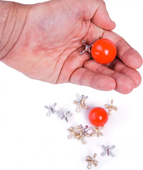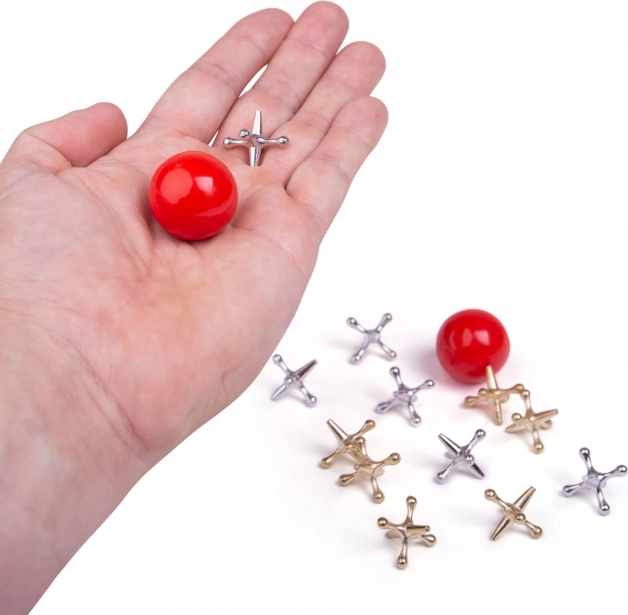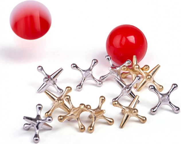 Il gioco con ossicini Jacks è un passatempo antico che i più piccoli apprezzeranno per la sua semplicità e il suo divertimento. I giocatori lanciano una pallina di gomma in aria e, in un breve lasso di tempo, raccolgono quanti più ossicini di metallo possibile prima che la pallina tocchi di nuovo terra. Questo gioco è ideale per sviluppare la motricità fine e la concentrazione.
